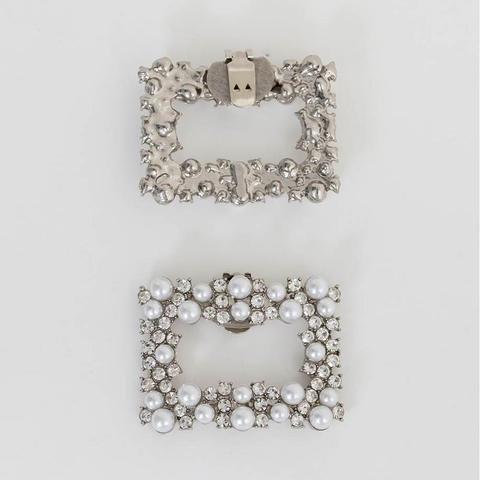 Bijou de chaussures de mariage Clip de perle blanc ivoire Décorations de chaussures Clip de chaussures à boucle en alliage de strass carré pour mariée
