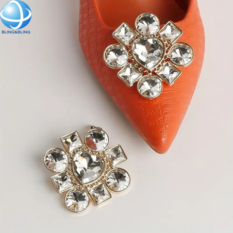 Embellissements de chaussures fleur en cristal Clips de chaussures boucle en métal détachable pour femmes sandale Vamp ornement bijoux