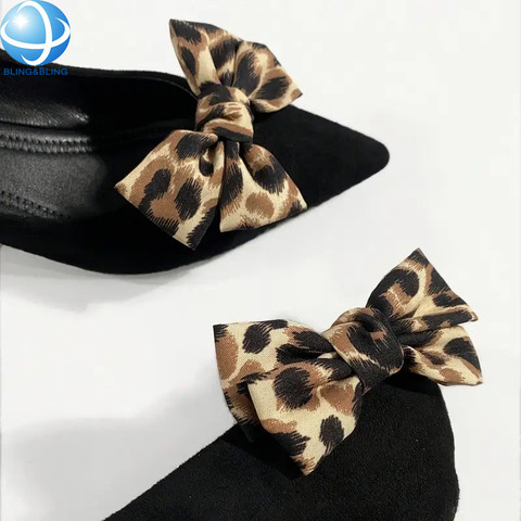 Clip de chaussure à nœud imprimé léopard en Polyester détachable de luxe pour la fête de mariage dames de mariée talons hauts décoration de bijoux à bricoler soi-même