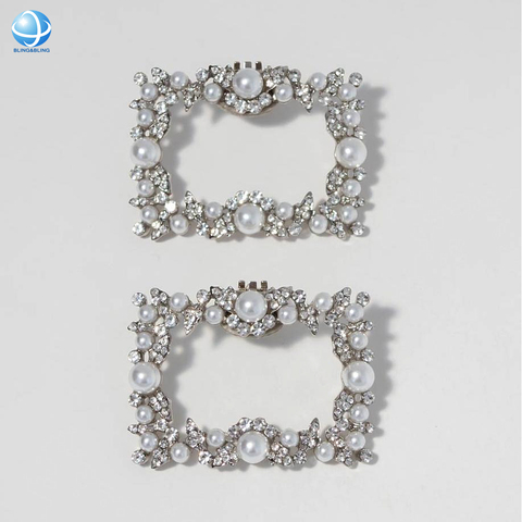 Bijoux élégants en perles de perles Accessoires pour pinces à chaussures Boucles carrées en strass à paillettes pour les occasions formelles Embellissements de chaussures