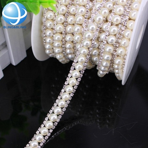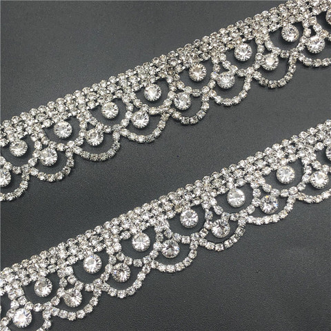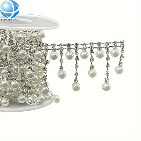 Ingrosso 12mm Catene di perle con perline strass frange taglio Applique catena di cristallo per cucire artigianato fai da te accessori per abiti