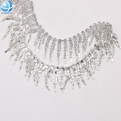 Strass lucido artiglio di cristallo con catena con frange per donna abito da sera abito da sposa accessori per la realizzazione di abbigliamento