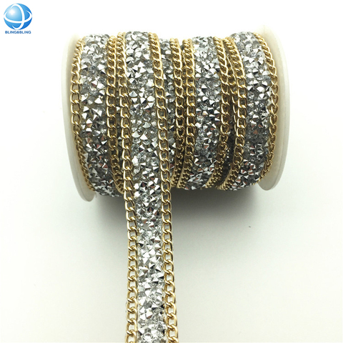 Su misura sss8 SS10 SS12 placcato oro chiaro cristallo AB catena strass catena rifilatura per abbigliamento scarpa cappello accessorio