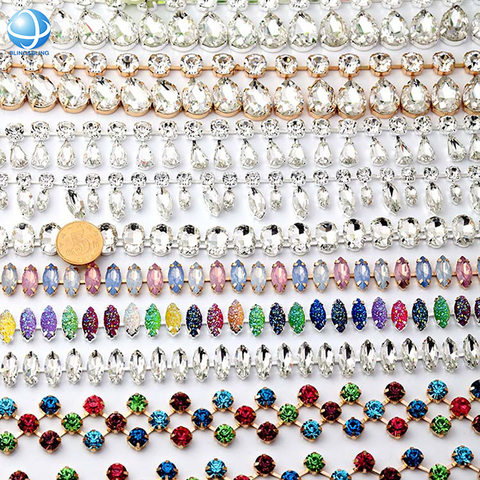 Colori personalizzati strass in cristallo placcato oro rotolo Trim per donna uomo abbigliamento accessori decorazione gioielli fai da te Applique