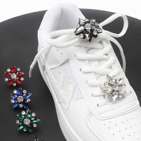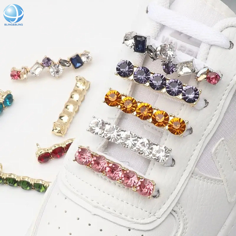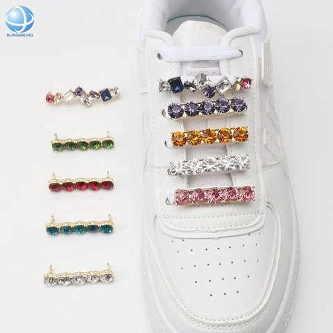 Glitter kristal ayakkabı bağı Charms çok renkli imitasyon toka Metal AF1 Sneakers DIY aksesuarları için ayakkabı dantel etiketi